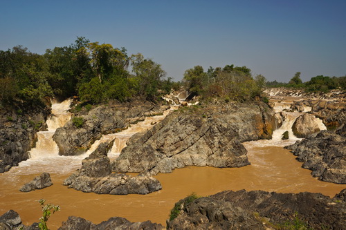 El rio Mekong en el sur de Laos, cerca la frontera con Camboya, es impresionante de ancho y poderoso, sobre todo en el sitio llamado ‘Cuatro Mil Islas’, que el rio atraviesa con una fuerza salvaje que impone respeto…